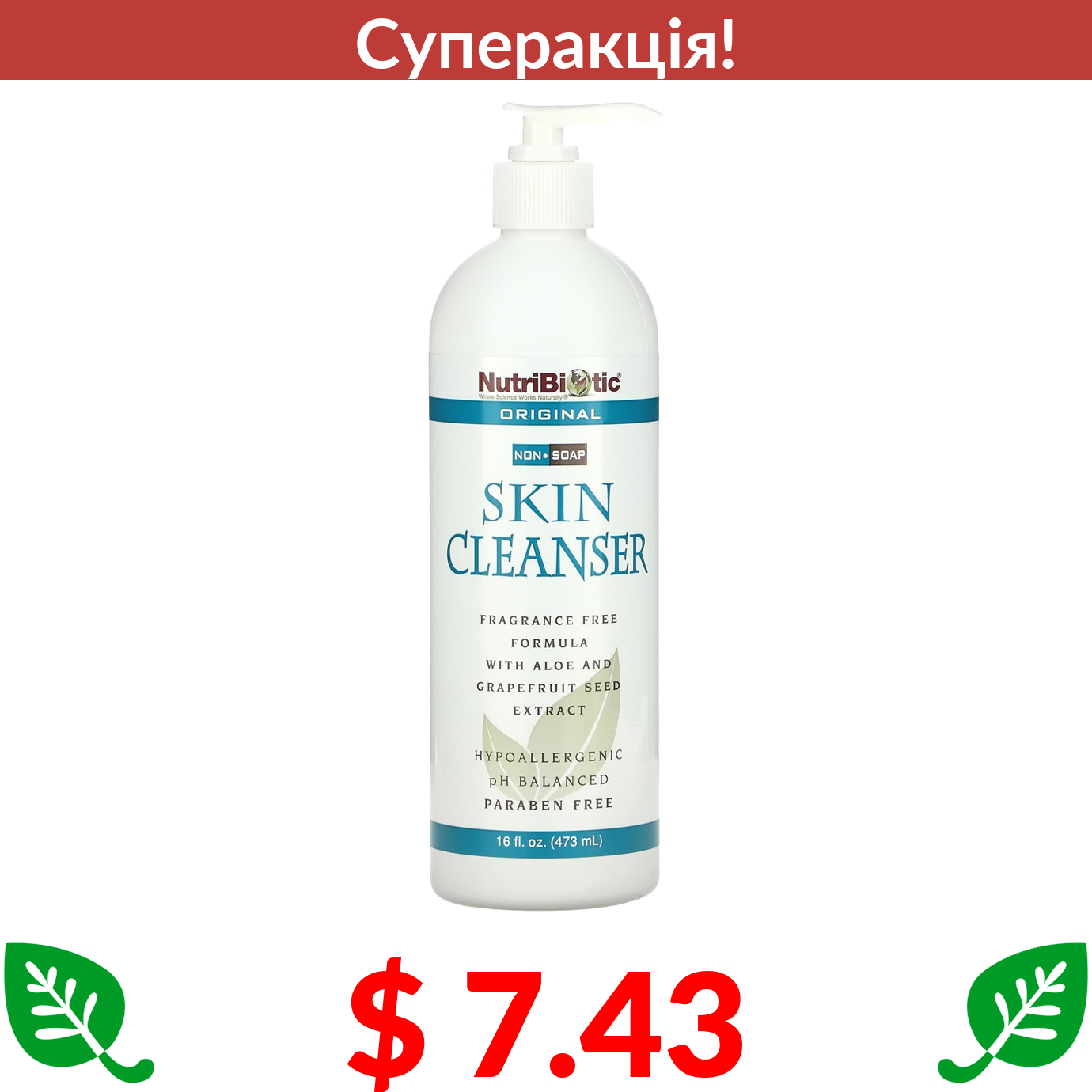 $ 7.43 NutriBiotic, оригінальний очищувальний засіб для шкіри, без мила, 473 мл (16 рідк. унцій)