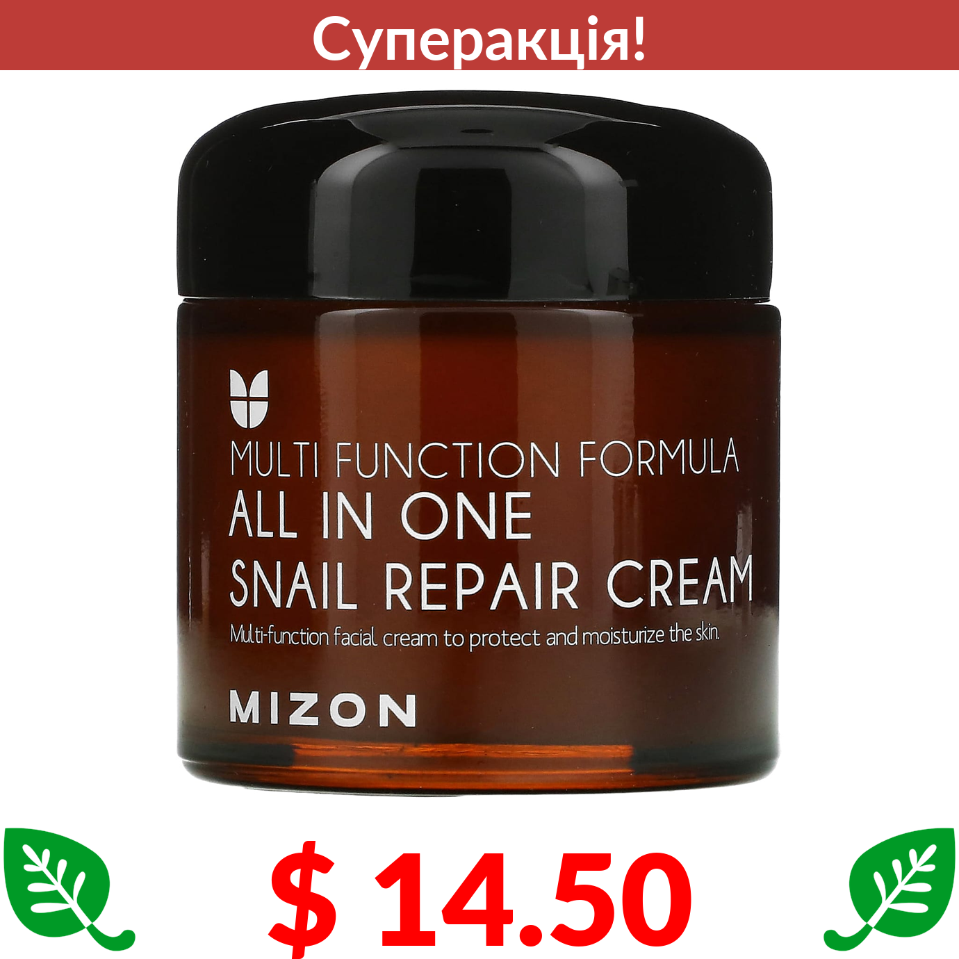 $ 14.50 Mizon, універсальний відновлювальний крем із муцином равлика, 75 мл (2,53 рідк. унції)