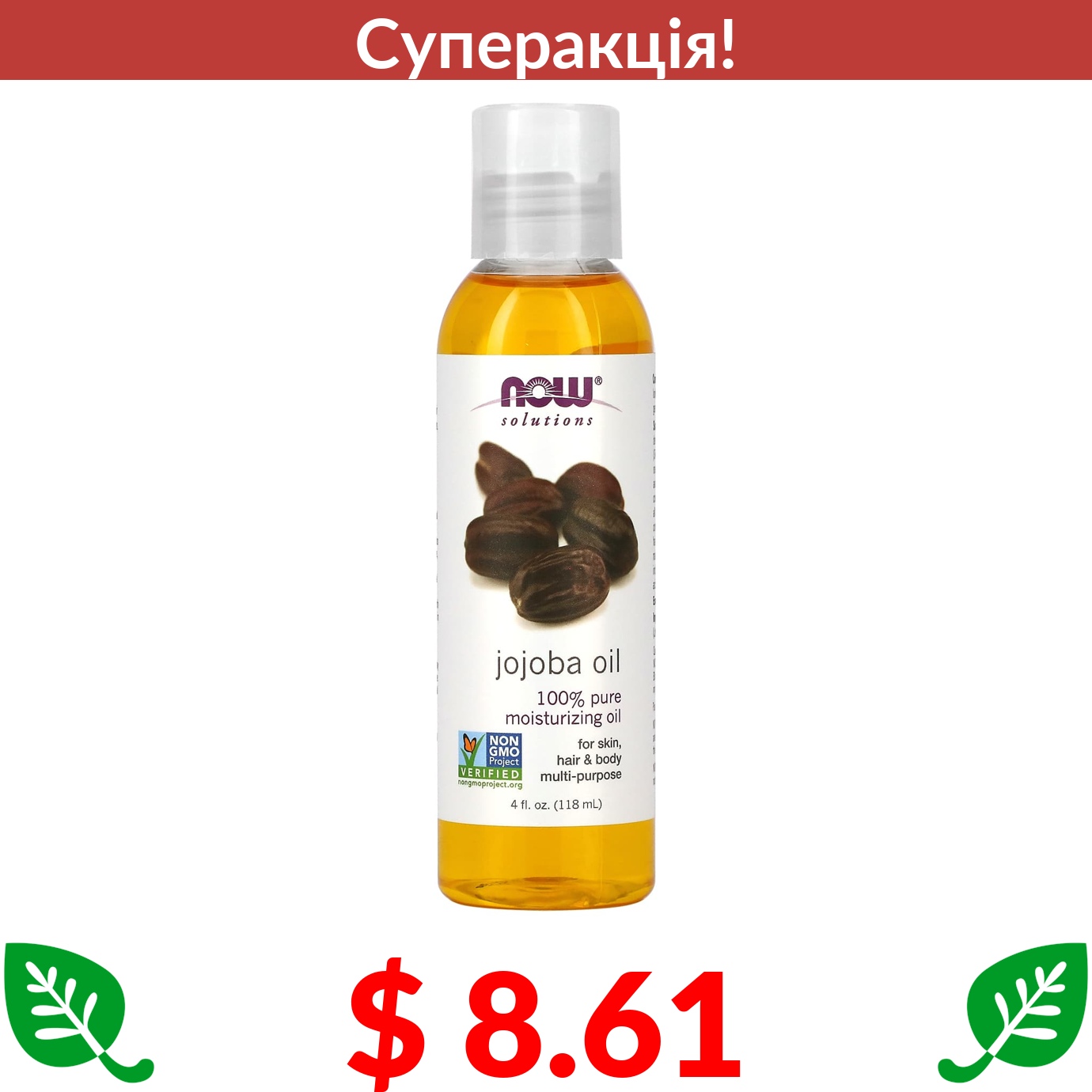 $ 8.61 Now Foods, Solutions, Jojoba Oil, 4 fl oz (118 ml)
