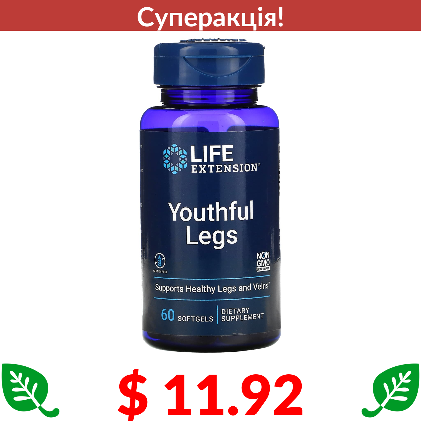 $ 11.92 Life Extension, добавка для молодості ніг, 60 капсул