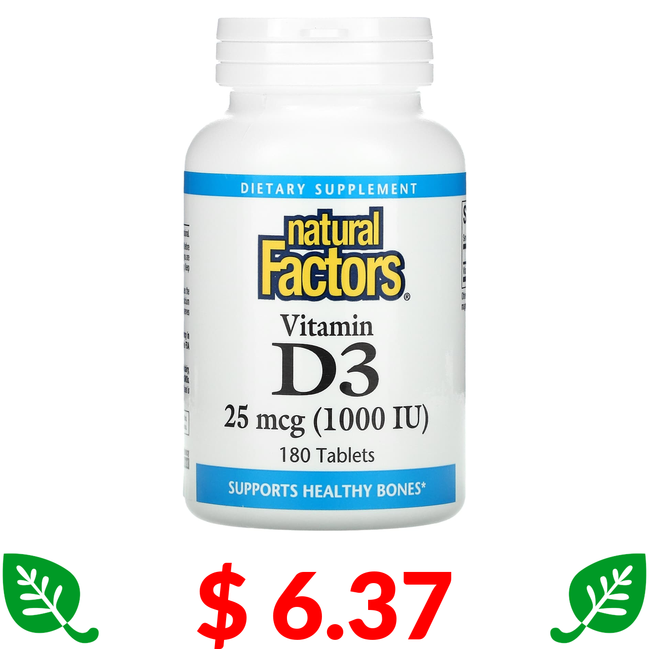 $ 6.37 Natural Factors, Vitamin D3, 25 mcg (1,000 IU), 180 Tablets