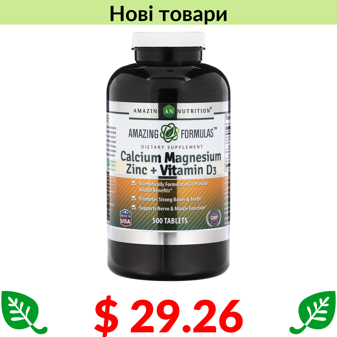 $ 29.26 Amazing Nutrition, Calcium Magnesium Zinc + Vitamin D3, 500 Tablets