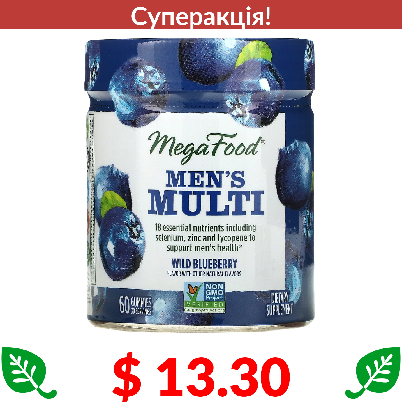$ 13.30 MegaFood, Чоловічий мульти, дика чорниця, 60 цукерок
