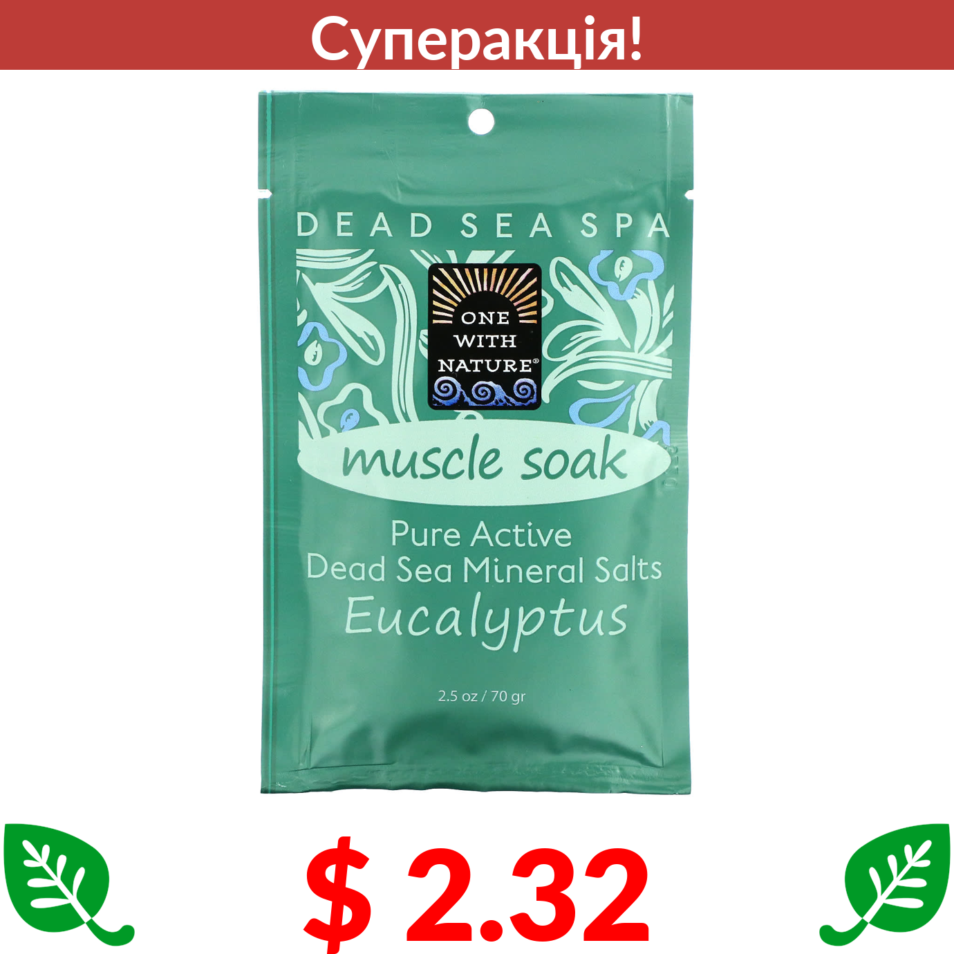$ 2.32 One with Nature, Dead Sea Spa, Mineral Salts, Muscle Soothing, Eucalyptus, 2.5 oz (70 g)