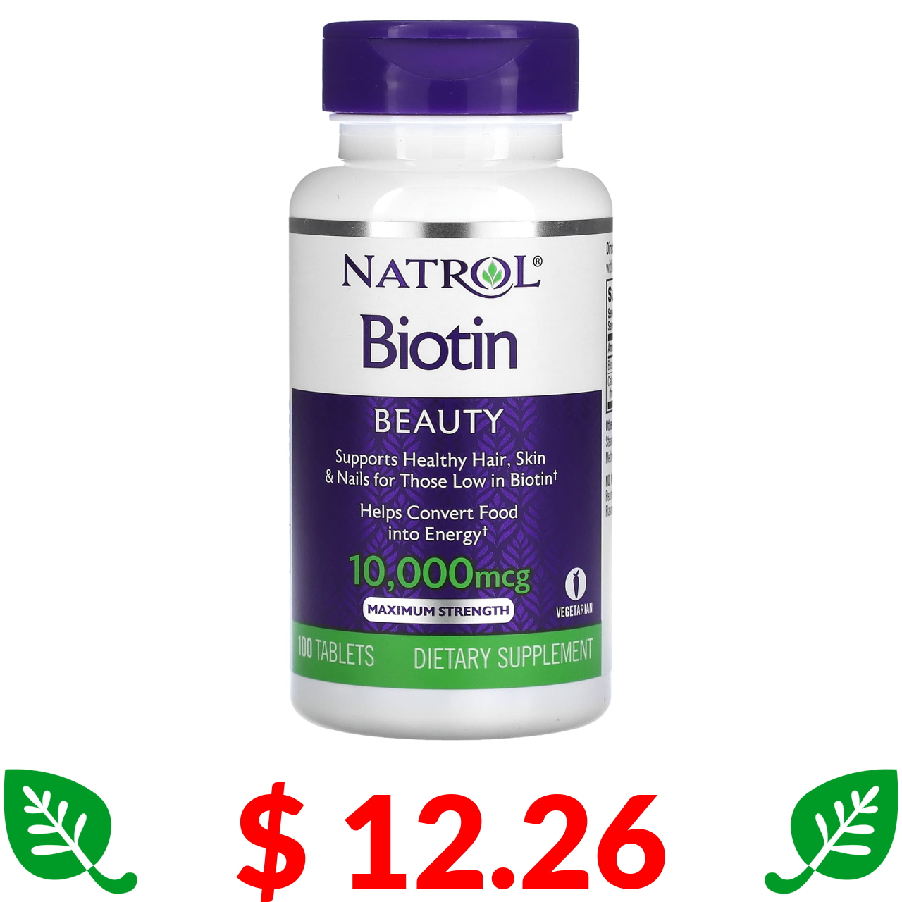 $ 12.26 Natrol, біотин, максимальна сила дії, 10 000 мкг, 100 таблеток