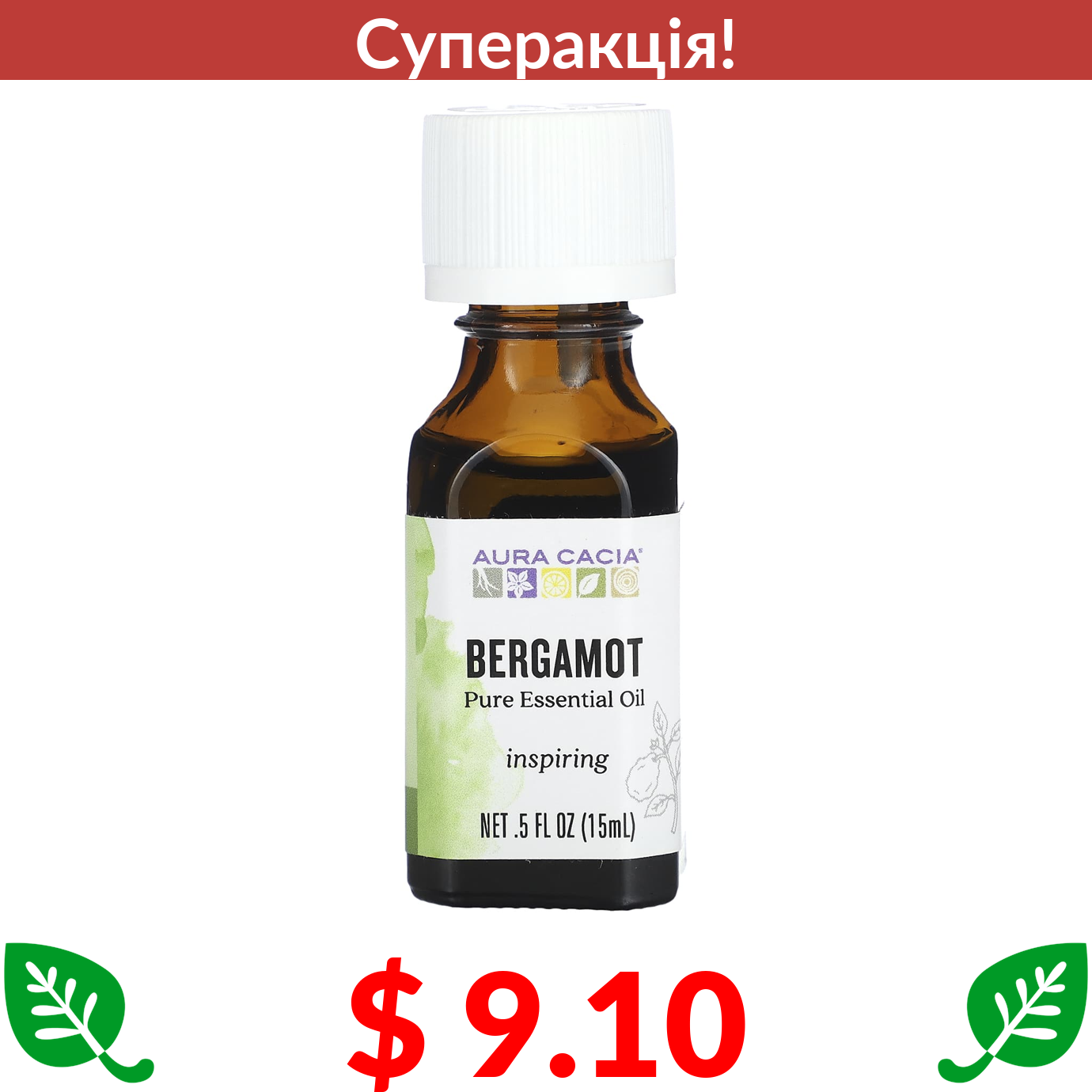 $ 9.10 Aura Cacia, 100% Pure Essential Oil, Bergamot, .5 fl oz (15 ml)