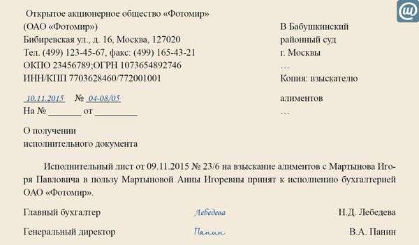 Возврат исполнительного листа работнику 114 фото