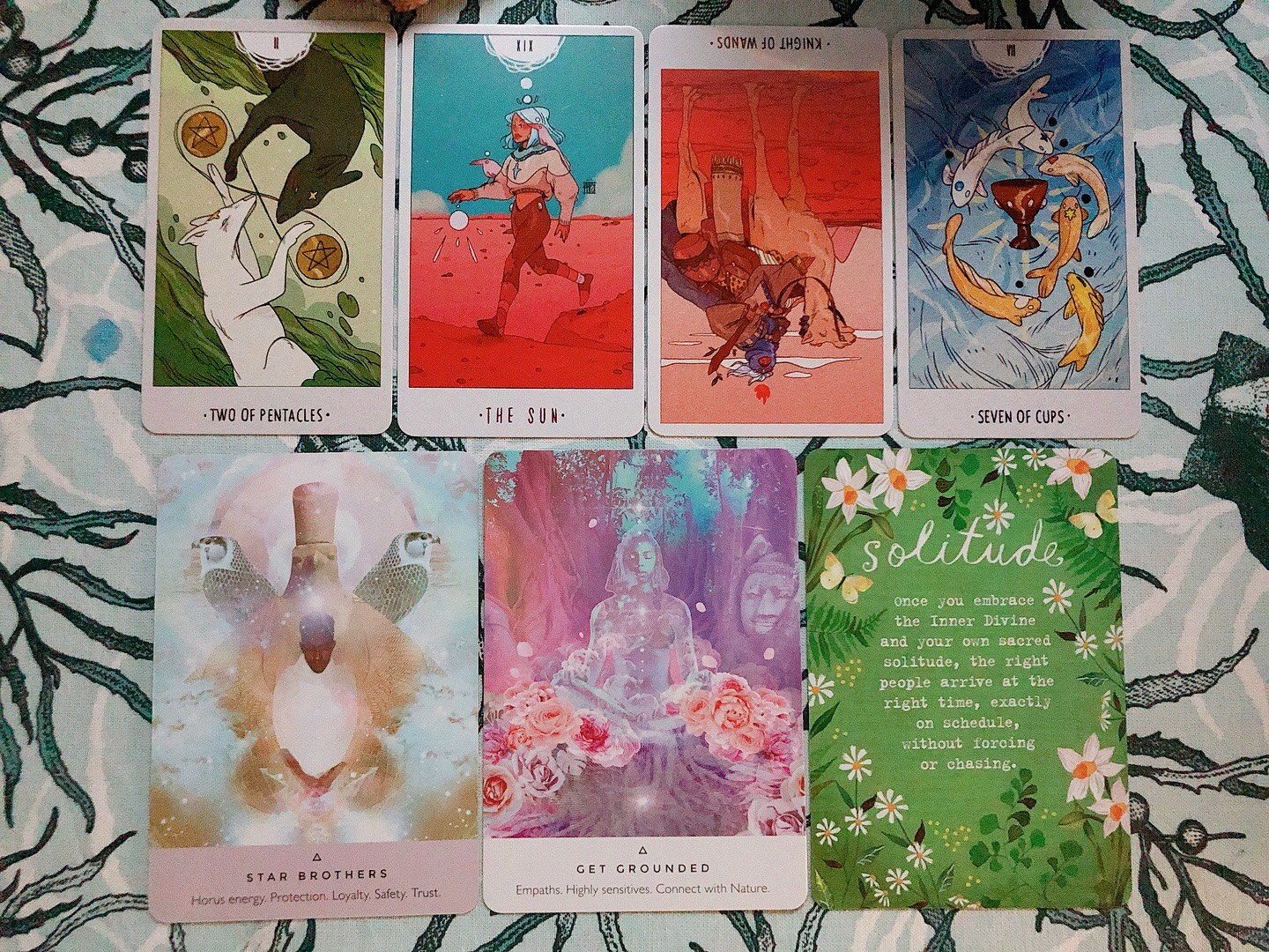 找到自己與萬物的連結,感受獨自一人的獨立性卻不孤單,將自己的感受與問題流動開來,請求與自己連結著的萬有疏通打結的地方、使你分心的地方,不需要由自己完成所有事情。